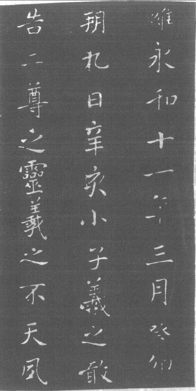 告誓文(局部) 傳 東晉王羲之書。此係羲之為王述所扼,意絶世事不復出,誓告先靈之文。後世因稱為<告誓文>。有楷書“維永和十一年三月癸卯朔九日辛亥小子羲之敢告二尊之靈”云云十八行。字徑五六分,珍貴可寶。齊王僧虔手記:“先臨 <告誓>,次寫<黄庭>。”唐韋述《述書録》 曰:“右軍真、行書,僅存<黄庭>、<告誓>等四卷。”誠係古今名作。真迹嘗藏唐内府,褚遂良 《右軍書目》有記録,後佚不傳。翻刻本有《玉烟堂帖》本、《墨池堂帖》 本、《寳晉齋帖》本、《玉虹鑒真帖》 本等。《墨池堂帖》本題為“隋僧智永集王右軍書”,與他本略異。《寳晉齋帖》本 “智永”二字,不知是智永所臨、或係其押署、亦或後人加書? 今所傳諸翻刻字多磨滅,且乏古意,所據不詳,故有俱屬偽托之說。 |