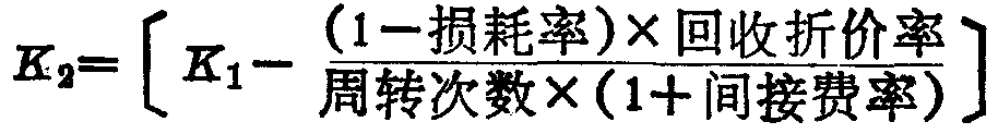 周转材料摊销量(费)=一次使用量×K2(摊销量系数) 其中