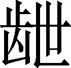 啮咋皃。例:老鼠~衣服。❍ 用牙将食物~碎再吃,要细嚼细咽。也说“咋(shǐ)”《广韵》:“,啮咋皃。”《汉语大字典》:“,同‘噬’。咬。”