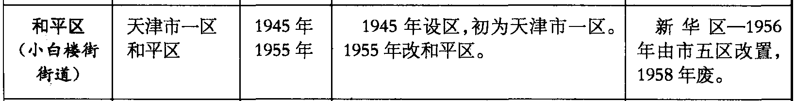和平区(小白楼街街道)天津市一区和平区1945年1955年1945年设区,初为天津市一区。1955年改和平区。新华区—1956年由市五区改置,1958年废。