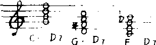 > 在幼儿音乐作品中应用最广的七和弦是调式属音上的七和弦,亦称“属七和弦”。C大调、G大调、F大调的属七和弦是: