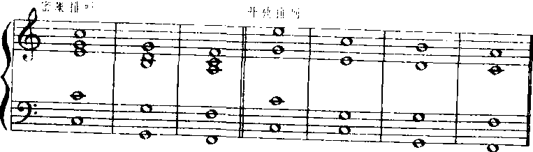 在配置伴奏时,应用密集排列法较多,特别是少年儿童歌曲,应用更为普遍,但有时为了取得宽广、舒展和有气势的和弦效果,也可适当选用开放排列法和弦。 ☚ 正三和弦的重复和省略 旋律中的和声内含 ☛ |