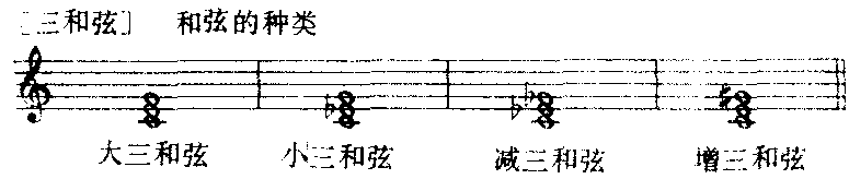 | 释义 | 和弦的种类与性质 和弦的种类与性质根据3度叠置原则构成的和弦可分为如下几种:由3个音组成的称为三和弦;4个音组成的称为七和弦;5个音组成的称为九和弦;6个音组成的称为十一和弦;7个音组成的称为十三和弦。其中常用的是前3种各和弦中的最低音称为根音,上方各音按与根音的音程关系分别称为3音、5音、7音、9音等。根据和弦音之间音程性质的不同,三和弦又可分为4种:大三和弦(大3度及纯5度)、小三和弦(小3度及纯5度)、减三和弦(小3度及减5度)与增三和弦(大3度及增5度);七和弦可分为7种:大小七和弦即属七和弦(大二和弦加小7度)、小七和弦(小三和弦加小7度)、减七和弦(减三和弦加减7度)、半减七和弦(减三和弦加小7度)、大七和弦(大三和弦加大7度)、小大七和弦(小三和弦加大7度)与增大七和弦(增三和弦加大7度);九和弦一般在属七和弦上方添加9度音构成,可分为大九和弦(属七和弦加大9度)与九小和弦(属七和弦加小9度)两种。上述各类和弦中以大、小三和弦与七和弦中的前3类及属七和弦最为常见,其他的运用较少。