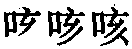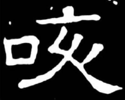 9画 口部 咳嗽,呼吸器官受到刺激时产生的一种反射作用,把吸入的气急促呼出,声带振动发声: ~喘|干~|百日~。