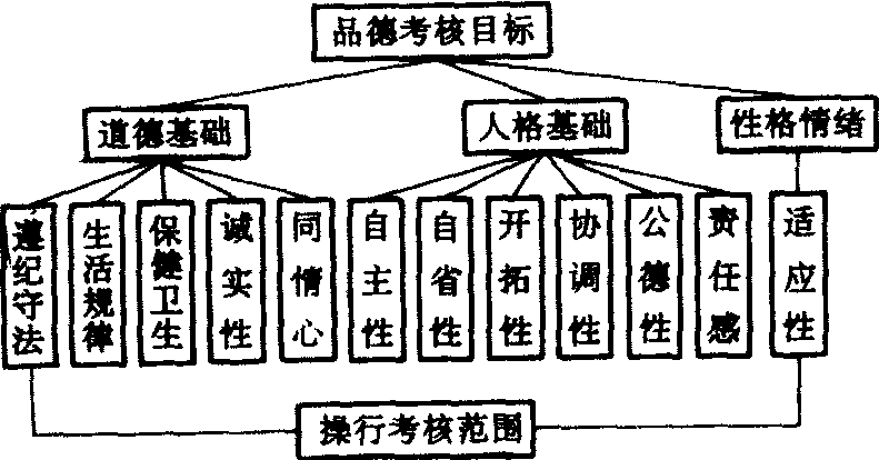 | 释义 | 品德考核 品德考核pinde kaohe品德是指道德品质。品德考核是测量人们遵守共同生活准则和规范的程度及与此有关的行为特质。就中小学而言,这些准则和规范是指中小学生守则及有关青少年的法纪。其行为特质包括,遵纪守法性、生活规律性、保健卫生、诚实性、同情心、自主性、自省性、开拓性、协调性、公德性、责任感和情绪适应等。图示如下:
