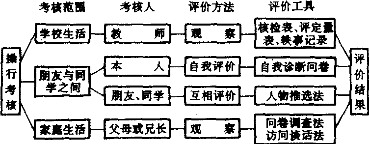 测量品德主要采用操作考核与分析评价相结合的方法,图示如下:
