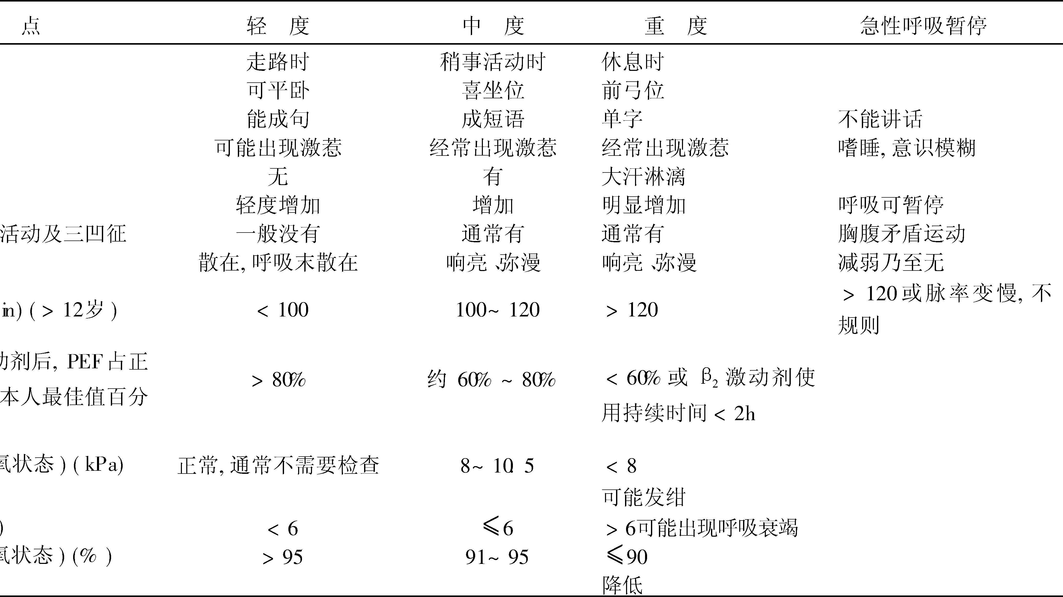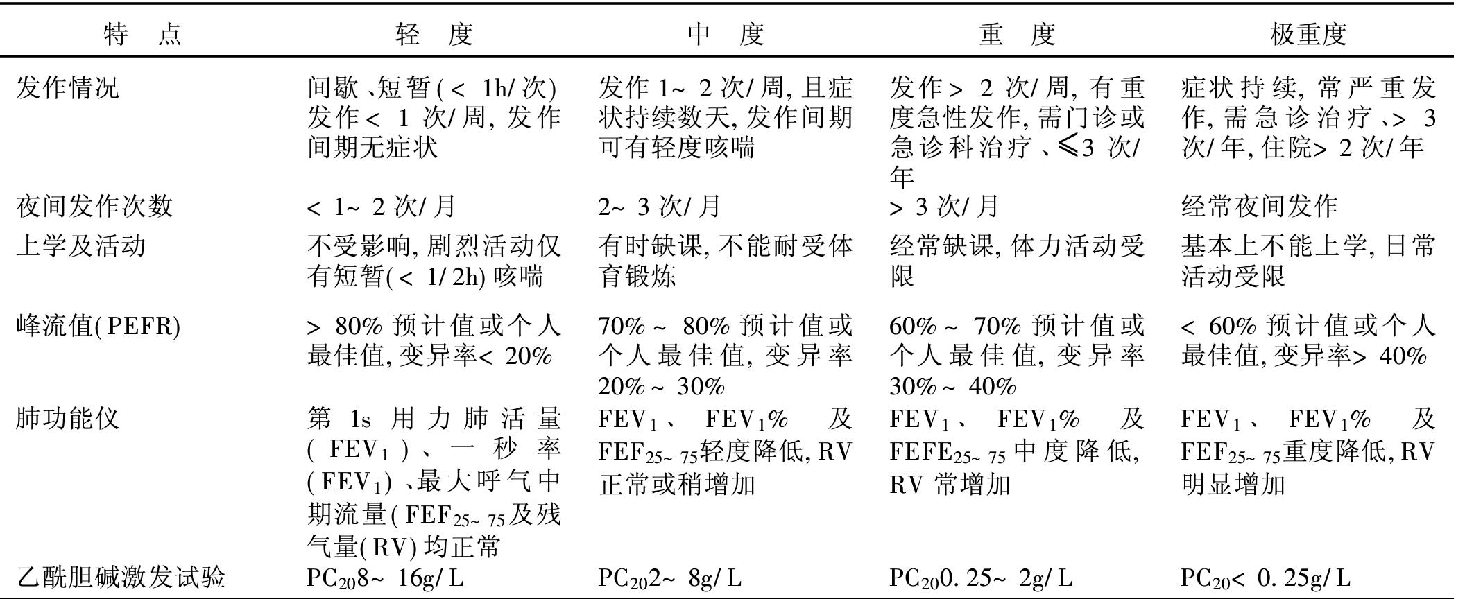 ❶一个患儿只要具备某级严重度的一个特点则可将其列入该级之中。 ❷PEF变异率测定方法:每日清晨、傍晚定时测定PEF,至少连续监测1周,然后计算每日PEF变异率。计算方法:PEF变异率= ×100%。