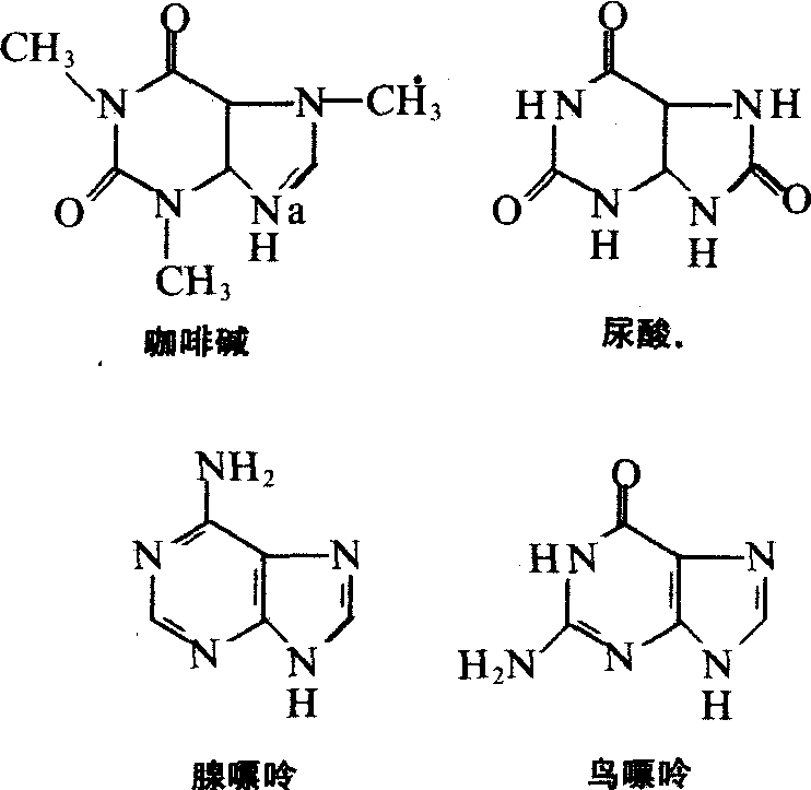 嘌呤piào lìng一种有机化合物。[英] purine。1932年11月《化学命名原则·有机化学命名原则》第五章:“Purine,嘌呤。(嘌读如票,呤读如令。)”1939年Teh-Ching Leo, Cousland's English-Chinese Medical Lexicon:“purin,嘌呤,普林。” 化学物质 化学物质吡 苄 剂(试~;杀虫~) 化合物:羰 卟 哒 羧茎 巯茎 羟茎硭硝 硇砂 有机化合物:脂 肽 膦 胂 腈 胩 肼 脲 胨 甾 腙 肟 胍 氨胺 铵 脎 烷 烯 炔 烃 脒苎 醇 酰 酚 酮 醛 醚 酯醌 酞 酶 醣 酐 嗪 砜 甙羟 莰 苯 茚 萘 菲 蒽 苷蒈 苊 鏻 鉮 凎 啶 糖 蜡噻吩 吡咯 噻唑 咔唑 吡啶 嘧啶 喹啉 吲哚 呋喃 旦白 嘌呤 哌嗪 萜烯 无机化合物:盐 矾 硝 卤 酸 碱 水 酰 铵 锈 砒霜 石膏 阴精石 一种无机化合物:丹(丹干;丹矸;丹砾;丹朱;丹沙;丹砂) 朱砂辰砂 润泽光艳的朱砂:渥赭 渥丹 渥朱 具有强烈腐蚀性的浓硝酸、浓硫酸:镪(镪水;硝镪水) 金属表面的氧化物:锈(~涩;生~) 铁锈:铁腥 铁衣 铜锈:铜华 铜花 铜青 铜毒 铜黛 铜绿 ☚ 元素 自然的 ☛ 嘌呤 嘌呤piaoling无色晶体,熔点为216℃,易 溶于水,有弱碱性。嘌呤的衍生物广泛存在于自然界,如: