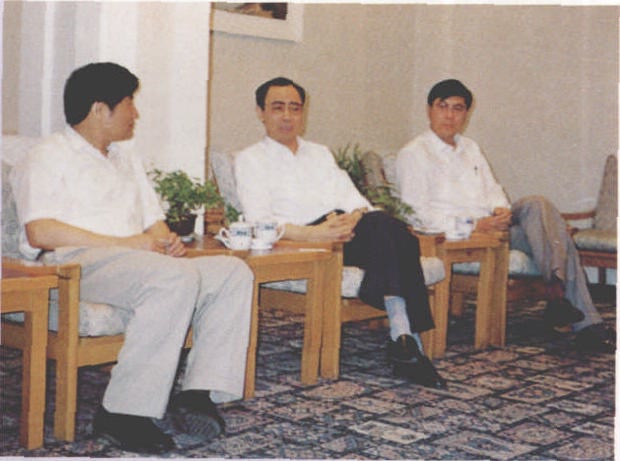 1.中国国泰证券四川分公司积极开展对外经济业务合作, 引进外资。图为总经理张继毓在向美国中诚黄金基金管理公司代表介绍投资项目, 洽商业务合作。