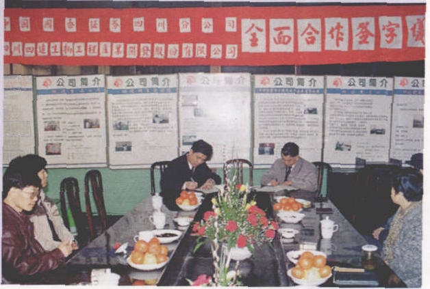 4.公司积极开展投资银行业务, 除开展A、B股发行、 上市推荐和代理交易业务外, 还开展企业购并、财务顾问等业务。图为公司与四川四达生物工程产业开发股份公司签订财务顾问协议。