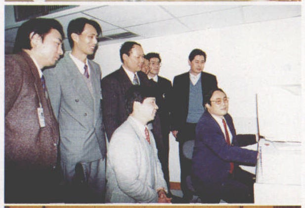 4.1996年3月28日, 中共四川省委副书记杨崇汇在于晓军总经理等陪同下视察新时代广场卫星电话通讯情况。