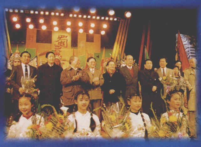4 1995年1月22日,四川有线电视台举办“蜀汉文化之春” 大型直播文艺晚会。 演出结束后,省委、 省政府领导上台接见主要演员和晚会组织者。 |