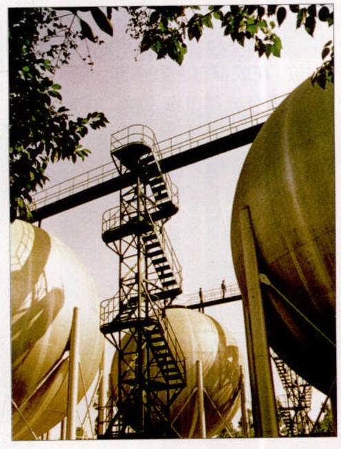 3.成都市煤气总公司储气站有容积为5000立方米的大型球罐8个,担负成都市40多万户民用户和100多家工业用户的部分调峰任务。