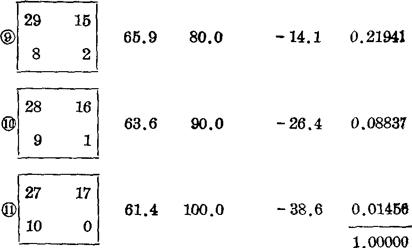 ❸、 ❷、 ❶组合的P值; 按式(3)由第 ❺组合递推出第 ❻组合的概率由此尚可递推出第 ❼、 ❽、 ❾、(10)、(11)组合的P值。 参考书目 陆守曾等: 医用统计工具表,吉林人民出版社,1978 ☚ 两样本率比较 两个四格表的交互作用 ☛ |