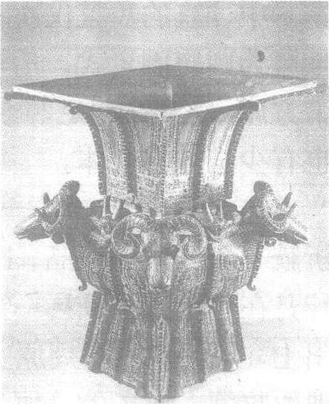 四羊方尊 器体满饰精细的线刻纹。颈上部饰蕉叶纹,与器形相吻合,适应并强化了口部开放、上扬的动势。下饰带状夔纹、兽面纹。羊背、胸部皆饰鳞纹,前腿上饰长冠鸟。圈足上饰倒夔纹。器体四角和四壁的中心各饰一道扉棱。扉棱亦称棱脊,是在器表合范处作适当处理,以掩盖合范留下痕迹,不仅起到加固器体的作用,还演变为富有特色的装饰,使体面间转折产生起伏变化,增强了造型的气势。商晚期和西周早期青铜器流行扉棱装饰。此尊的扉棱皆加饰刻纹,上部凸出沿外,羊颈下、腹部的扉棱还带有钩状饰,变化微妙,更富于装饰性。 尊为盛酒器,指侈口、鼓腹、高圈足的器皿。尊、彝二字常联用,泛指青铜礼器。青铜器中圆尊常见,方尊较少。此尊造型雄奇,装饰瑰丽,工艺精绝,为尊中上品。 ☚ 人面纹方鼎 妇好三联甗 ☛ 四羊方尊 四羊方尊商代晚期青铜器。1938年宁乡县月山铺乡(今黄材镇) 茶园村转耳仑出土,时代为商晚期。现藏中国历史博物馆。该器口径46.1厘米,高58.3厘米,重34.5公斤。喇叭状劲张的方形口部,每边边长几乎接近器身的高度。缘于尊的四肩、腹部和圈足,四只脚踏实地的大卷角山羊造型稳稳地扛起了整个重量。在逐渐缩小的颈部,饰有蕉叶纹、夔纹和兽面纹,肩部则有四条龙相互蟠缠。山羊的形象寓动于静,羊背和胸部饰有鳞纹,前尾为精丽的长冠鸟,圈足上饰有夔纹,全器上下都以细雷纹为地,光洁刚劲。方尊的边角及每一面的中心线的合范处都是长棱脊,其作用是以此来掩盖合范时可能产生的对合不正的纹饰,同时也用以改善器物边角的单调感,增加造型的气势。肩上的龙及羊的卷角均以分铸法做成,羊角是事先铸成后配置在羊头的陶范内,再合范浇铸,浑然一体,可见当时的合范技术十分高超。该器工艺设计集浅雕、浮雕、圆雕于一体,将平面的图像和主体的雕塑结合起来,是中国商代金属工艺技术成就的最杰出的作品之一,被誉为中国古青铜器精美的代表。 ☚ 青山桥窖藏青铜器 牺首兽面纹方尊 ☛ 四羊方尊 四羊方尊1983年湖南省宁乡县黄材月山铺出土。商代青铜酒器。通高58.3厘米,口部边长52.4厘米,重34.5公斤。方体,作喇叭形口,肩腹部四角各铸一只卷角山羊,羊腿抵附于圈足之上,似用身体稳健地扛起了大铜尊,形态十分逼真。尊颈部饰有夔纹和蕉叶纹,肩饰高浮雕蟠龙4条,羊首、身等处饰雷纹、鸟纹、鳞纹等。纹饰繁缛,集中了绘画、线雕和浮雕诸种手法,把器皿和动物形态有机地结合起来,不愧是商代青铜器工艺中最杰出的代表。此器是现存商代青铜器中最大的方尊,在铸造方法上采用了分铸与合铸相结合的技术。为古代冶铸史的研究提供了实物资料。 ☚ 象尊 兽面纹铜鼓 ☛ |