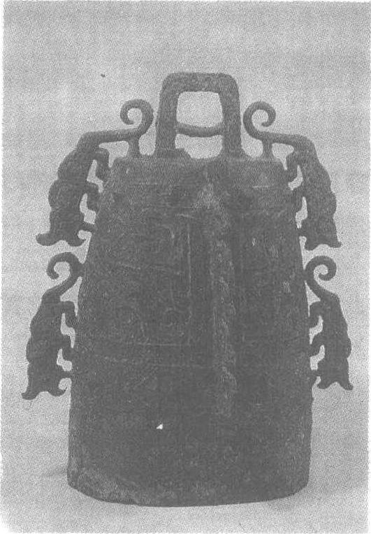 西周。古代乐器。高42厘米,舞纵12.6厘米,舞横17.9厘米,于纵20.7厘米,于横26.4厘米,重11.54公斤。上海博物馆藏。此镈粗犷而朴质,形体较大,是镈的原始形式。器前后棱脊以鸟为饰,两侧饰四虎,舞上有钮,钲部无枚,于平,器体两面饰对称的卷体龙纹,下口平,略呈椭圆形。此类形式的乐器和一般钟的结构不同,器壁较薄,发音短促。其使用方法与编钟不同,可能是一种节奏性的乐器。为西周中期所铸。