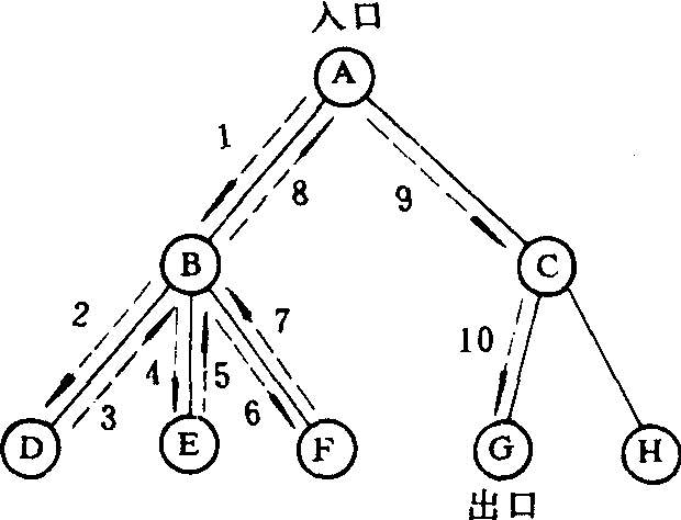 本例的试探搜索的步骤用虚线加箭头标在图上.结点B,D,E,F构成以A为根的树的一个枝杈,开始先走这个枝杈(从第1,2,…,到第7步),走不通了,由第8步返回A,再走另一枝杈(由C,G,H组成),经第9,10步就可觅到出口.许多问题的求解过程都会用到这种回溯探索的控制策略. ☚ 穷举 数据结构 ☛ |