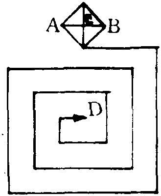 | 释义 | 回纹棋 回纹棋取其形似汉字“回”而名之。棋格如图:3人对弈(或2人对弈)。布子在A、B、C点。走子以猜手指中数为凭。A用一、四、七数,B用二、五、八数,C用三、六、九数。同时出指,指数之和中了谁的数,即可向前走一步。前方子被后方子追上,前方子被罚停一步。最先到达D点者为胜。此棋对训练儿童识数的概念、加减法的计算很有益处。