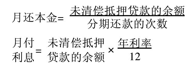 月还本付息额=月还本金+月付利息 固定利率非均付抵押贷款一种固定利率的抵押贷款。其分期付款的特点是每月以金额不等的方式来支付。例如一笔60000元的抵押贷款,期限为30年,年利率为12%,每月还本付息的计算方法为: