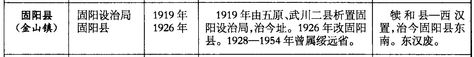 固阳县(金山镇)固阳设治局固阳县1919年1926年1919年由五原、武川二县析置固阳设治局,治今址。1926年改固阳县。1928—1954年曾属绥远省。犊和县—西汉置,治今固阳县东南。东汉废。