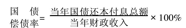 国债偿债率一国在一定时期(通常是当年)偿付国债本息额占财政收入的比例,是反映国债偿还能力的主要指标。一般来说,国债偿债率越高,政府偿还债务的能力越低。国债偿债率具体计算公式为:  本指标反映财政收入对当年国债还本付息的保证程度,也是衡量一国国债规模是否合理的指标之一。国债偿债率 国债偿债率government debt-service ratio一国在一定时期(通常是当年)偿付国债本息额占财政收入的比例,是反映国债偿还能力的主要指标。一般来说,国债偿债率越高,政府偿还债务的能力越低。国债偿债率具体计算公式为: