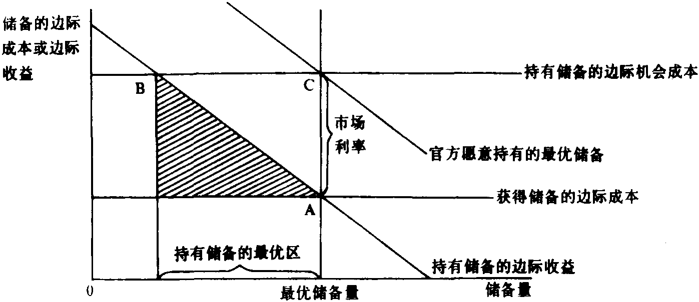 | 释义 | 国际储备guó jì chǔ bèiмеждунарóдные резéрвы国际储备International Reseive又称“国际储备资产”。一国官方所持可用于国际支付,并能维持本国货币汇价的货币资产。主要由下列几部分组成:官方持有的黄金;官方持有的自由兑换的货币;在国际货币基金组织的储备资产和特别提款权。第二次世界大战后,美元,英镑和其他西方主要货币曾相继成为自由兑换货。现在,国际收支中使用最多的仍是美元。由于国际金融市场的各国货币汇率可能波动,国际储备中的自由兑换部分易受影响。 国际储备 国际储备国际储备是指一国货币行政当局 (政府官方) 所持有的,备用于支付国际收支逆差和维持汇率稳定的那部分流动资产。国际储备资产具有三个特点: ☚ 国际收支平衡表 国际金本位制 ☛ 国际储备International Reserve国际储备是一国官方持有的用于国际支付和维持本国货币汇率的流动性资产,包括黄金、外汇、在国际货币基金组织中的储备头寸和基金组织每个会员国尚未动用的特别提款权等。其数量多少标志着一国的金融实力,体现着一个国家国际清偿能力的强弱。它的主要来源是国际收支顺差,分得的特别提款权,政府或货币当局从国内及从国际市场上购买而增加的黄金,举借的外债和通过干预货币市场而收进的外币。尽管国际储备具有在国际收支困难时充当支付手段的缓冲功能,并可以从客观上和心理上稳定一国汇率,维护货币的信用基础,也是偿还外债的保证,但也并非多多益善。首先,持有国际储备比将它用于其他投资所产生的收益要低;其次,储备作为一种强力货币会增加国内的通货膨胀压力。因此,国际储备资产管理的关键是确定适度的储备量。微观经济理论关于效用最大化的条件,即边际成本等于边际收益的结论就可以应用于确定储备的适度量。首先,由于机会成本中包含了放弃对实际资源的利用,和经济调整所必须付出的代价等,持有储备的边际机会成本要高于获得储备的边际成本。持有储备的边际收益(年利息收益和本金损益)随储备量的递增而呈递减趋势。因此,在下图中A点上持有储备的边际收益等于获得储备的边际成本,故与A点对应的储备量是最优储备量。而在现实中,货币当局愿意持有的储备量取决于持有储备的边际机会成本,则在B点,在持有储备的边际收益与持有储备的边际机会成本相等处,才是货币当局理想的储备量。要使货币当局理想储备量等于最优储备量的条件就是用市场利率来表示的储备收益足以抵偿持有储备的边际机会成本。也就是持有储备的边际收益曲线向右上方移动,直到与持有储备的边际机会成本线交于C点为止。这种理论分析尽管很明确,但在实际应用中却有许多问题,主要是如何估计储备资产在弥补国际收支赤字,避免国内经济紧缩性调整所具有的潜在收益。因此,在实践中很多国家都是根据本国经济发展的规模和速度、经济开放程度、外汇政策、国际汇率制度以及债务情况等因素来决定适度储备量的。其下限是经常储备量,即保证最低的外贸需要量;上限是保险储备量,即在本国经济发展速度最高时可能的对外支付需求。特里芬通过对1950~1957年12个主要贸易国储备变化的实证研究后认为,一国储备与进口额的比例以40%为标准,20%为低限。一般说来储备应满足3个月的进口需要,按全年储备与进口量的比例看,约为25%。