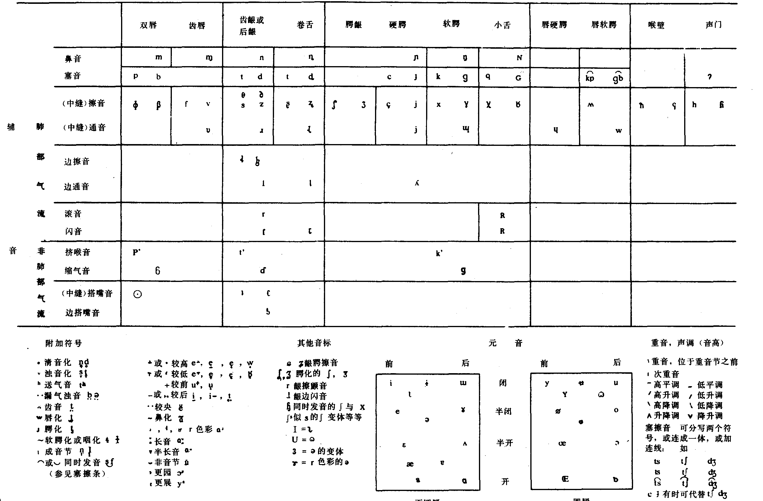 ☚ 音质 音节 ☛ 国际音标 国际音标Guoji yinbiao国际语音协会设计的一套语音学记音符号。1888年拟定初稿, 经过多次修改,现在通行的是1979年修订的方案。国际音标以拉丁字母为基础, 并以改变字形和借用别的语言字母的办法加以补充,以适应描写各种语言的需要。国际音标严格以一音一符为原则, 标音精确。 附 录 国 际 音 标 (修改至1979年)