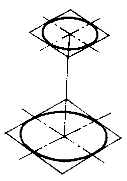 图3 上图是按1:5的比例尺画上、下底面半径分别为2.0cm,3.0cm,高为8.0cm的圆台的直观图的过程. ☚ 圆锥的直观图画法 球的直观图画法 ☛ |