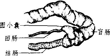 | 释义 | 圆小囊sacculus rotundus又称淋巴球囊。回肠与盲肠相接处膨大而形成的一个厚壁的圆囊,为兔所特有的结构。囊壁外貌的颜色较淡,易与色泽较深的盲肠相区别。内壁密布蜂窝状隐窝,隐窝凹陷部分的黏膜上皮下充满淋巴组织。圆小囊除对肠道起保护作用外,还在食物的消化吸收过程中起较大的作用。由于圆小囊具有很发达的肌肉组织,可把回肠来的食糜加以压榨,从而将经过消化的最终产物大量地由淋巴滤泡吸收。圆小囊还不断分泌出碱性液体,以中和由微生物所产生的有机酸,可保持大肠中有利微生物繁殖的环境,加强对粗纤维的消化。