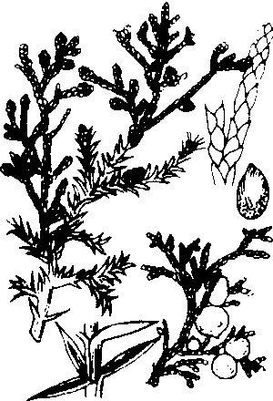 | 释义 | 古代名物 > 木果類 > 林木部 > 喬木 > 檜 > 圓柏 圓柏 yuánbǎi 即檜。 圆柏Chinese juniperSabina chinensis (Ju-niperus chinensis),别名桧柏、刺柏,古称桧、栝。柏科圆柏属常绿乔木。染色体数2n=4x=44。圆柏栽培历史悠久,《西京杂记》载,汉代西京长安(今西安)上林苑有栝十株。历代于寺庙、墓地、花园、厅前种植,老树颇多,中国泰安岱庙五株汉柏已2100多年,河南省济源县济渎大庙汉古桧“将军柏”已1900多年,至今郁郁葱葱。英国在1767年以前引种为重要园景树,中国各地及欧美广为栽植。圆柏高达30m,胸径3.5m,冠幅10m,幼年、青年的树冠尖塔形,壮年圆锥形,至老年则多广卵形。枝干常扭曲。叶两型:鳞叶交互对生,刺叶3枚轮生。雌雄异株,罕同株;雄花黄色集生枝端;雌花球形、绿褐色,轮生枝顶;花期4月。肉质球果近球形,次年10~12月成熟。