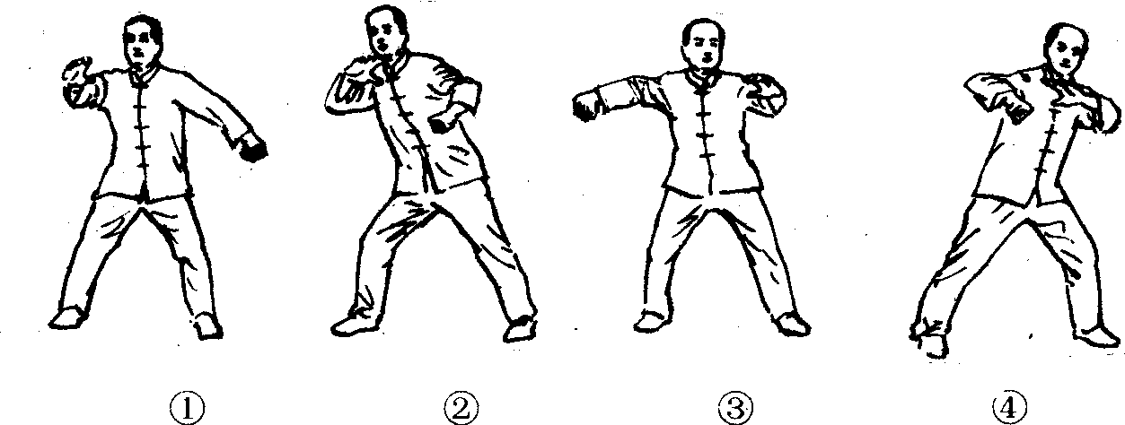 大成拳的基本拳法之一。为横向击打的动作。动作过程:预备式:两脚开立;上体正直;两臂屈肘在身体两侧抬起,右手成掌高与肩平或低于肩,左手握拳与腰平或高于腰,目向前平视。(图2—4—88—