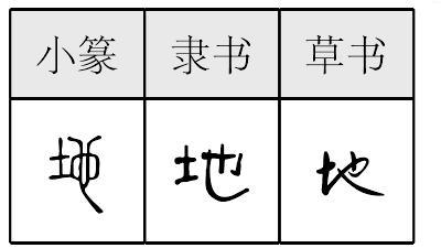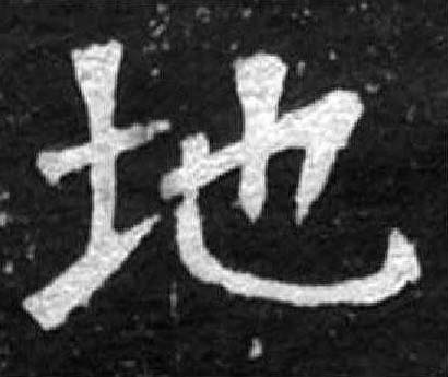 ❹冰天雪地|不败之地|不留余地|不毛之地|侧身天地|扯天骂地|撑天拄地|出人头地|怆天呼地|绰有余地|大败涂地|戴天履地|弹丸之地|顶天立地|洞天福地|翻天覆地|肤寸之地|改天换地|肝胆涂地|肝脑涂地|感天动地|纲常扫地|膏腴之地|攻城略地|呱呱坠地|规天矩地|喊天叫地|汗颜无地|撼天动地|轰天震地|呼天喊地|呼天抢地|花天锦地|花天酒地|欢天喜地|昏天黑地|脚踏实地|经天纬地|经纬天地|惊天动地|局天蹐地|跼天蹐地|开天辟地|哭天抢地|琅嬛福地|立锥之地|立足之地|骂天骂地|埋天怨地|瞒天瞒地|满天匝地|谩天昧地|漫天彻地|漫天盖地|漫天匝地|弥天盖地|弥天匝地|名声扫地|幕天席地|牛眠吉地|铺天盖地|容身之地|如履平地|若履平地|设身处地|声名扫地|首善之地|水银泻地|斯文扫地|死心塌地|四冲之地|随时随地|谈天说地|谭天说地|体面扫地|通天彻地|威风扫地|威信扫地|帷天席地|五体投地|谢天谢地|颜面扫地|一败涂地|一席之地|倚天拔地|用武之地|震天动地|指天画地|指天说地|置身无地|置颜无地|置之死地|置锥之地 地地,金文作 ,《説文》籀文作 ,小篆作 。 第一字形从阜,彖 (chǐ)聲。《説文》: “彖,豕也,从彑从豕。讀若弛。”又解釋説 “彑” 爲豕之頭。第二、三字形增 “土”爲意符。後世易聲符爲 “它”,棄繁取簡也,又訛變爲 “也”。“它” “也”作爲古文字構形部件,形音俱近而多混淆。銘文或用本義,或用作人名,或讀 “施”“弛”。 楚簡帛文作  ,或从土,它聲。或从阜从土,它聲。秦簡牘文作 ,古隸典型。 地 金文; 篆dì[土(意符) + 也(聲符)→地(《説文》:“地,元氣初分,輕、清、陽爲天,重、濁、陰爲地。萬物所陳列也。從土,也聲。 ,籀文地從 。”地,人類生長活動的所在〈地球〉; 地球或地球的某部分〈地質、地殼、陸地、地下〉; 地球表面的土壤〈土地、田地〉;地球上的一個區域〈地區、此地〉; 建築材料鋪成的平面〈地板、地毯〉; 所在空間或區域的部位〈地點、目的地〉; 人在社會關係中所處的位置〈易地以處〉; 表示思想或行動的某種活動領域〈見地、境地、心地〉;底子〈質地〉。)] 《詩經·小雅·斯干》:“乃生女子,載寢之地。”(若是生個小姑娘,鋪好席子睡地上。) 《孟子·公孫丑下》:“天時不如地利,地利不如人和。” [西漢] 司馬遷 《史記·秦始皇本紀》:“黔首或刻其石曰:始皇帝死而地分。”(百姓中有人在隕石上刻字道:“始皇帝死而後土地分。”) 地(6画) ❶de ❷dì