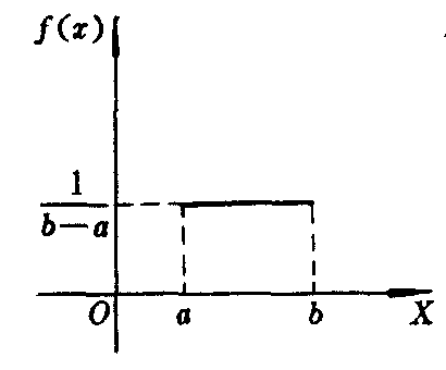 上述概率密度的连续型分布称为[a,b]上的均匀分布,或称随机变量X在区间[a,b]上服从均匀分布. 从投点的几何型试验中可看到,若X在[a,b]中某区域内取值的概率与区域的长度成正比,而与区域的位置无关时,则X具有均匀分布。它的图形如下。