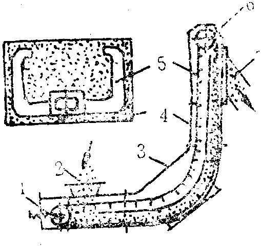 在密闭料槽中,通过全埋在物料之中的具有特殊形状刮板的链条运动,利用散粒物料颗粒间的内摩擦力大于物料与料槽之间的外摩擦力原理,而实现物料成整体连续输送的链式输送机(如图示。)它可水平、倾斜和垂直输送,还可多点给料及多点卸料。这种输送机生产率高、构造简单、体积小、重量较轻、维修容易、操作简单、能耗较低、密封性好、无环境污染。适用于粉末状和粒状物料的输送。目前在港口散粮码头卸船作业中已得到了推广应用。