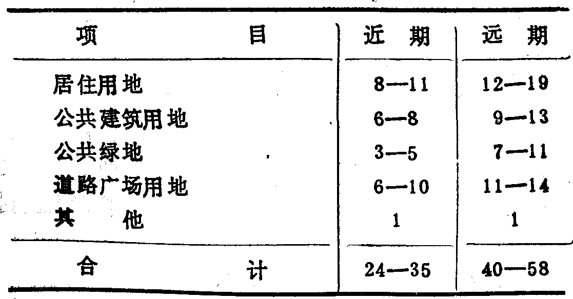 用作城市人民生活居住的城市土地。它是城市中集中布置居住建筑、公共建筑、公共绿地、道路广场等设施的用地,以便为城市居民提供生活居住和从事社会活动的场所。一般占城市总用地的50%左右,其中一般居住用地占城市总用地的20%,公共建筑、公共绿地、道路广场用地分别占城市总用地的10%左右。根据国家《城市规划定额指标暂行规定》,规划期内城市平均每居民生活居住用地参考指标如下(单位: M2/人):
