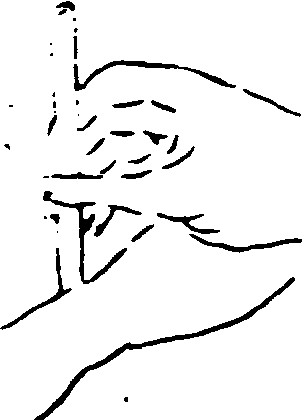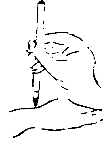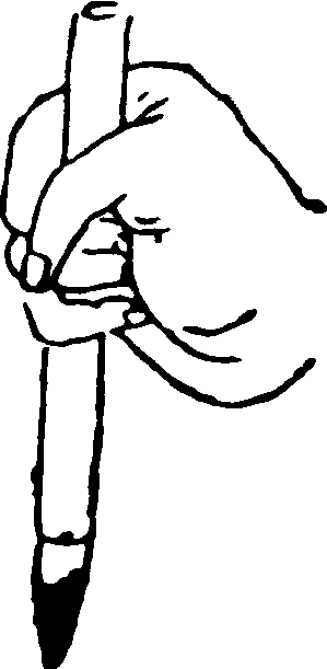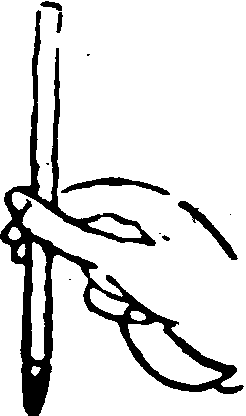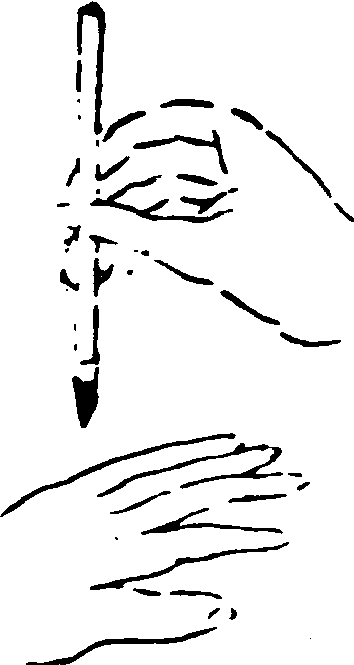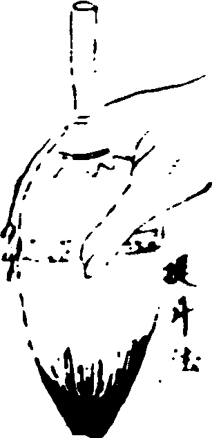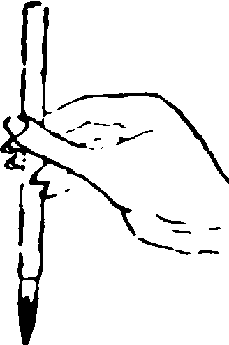 執筆法亦曰 “執管法”。即作書、畫時之執筆方法。有單鈎、雙鈎、 撮管、𢳇管、 握管、 鵝頭諸法。 (1). 單鈎——以母指與食指執管,復添中批輔助。適宜書小字及日本假名。“鈎”即鈎魚鈎,此則喻手指彎曲狀。 (2).雙鈎——以母指、食指、中指一并執管,復添無名指相助。即將 “單鈎”之食指改用食、中二指。適宜書大、中字。 (3). 撮管——指執於筆管末端,以便書大字時縱横運腕。“撮”者,抓、捏也。 (4). 𢳇管——以拇指及其余四指之前節, 夾持筆管。適宜書大字,增强腕力。有所謂 “虚掌實指”,即使掌寬,著力於前指。明文徵明觀其師李應禎執筆,稱其最妙處,在善以三指尖搦管,虚腕疾書,今人莫及。 (5). 握管——藉四指之中節,把握筆管。適宜書力强沉着之字。 (6).鵝頭法——置食指於筆管頂端,以拇指與中指、無名指執管,擺動手腕作書,成鵝頭擺動之勢。以上所述,僅係六種基本執筆法,其他方法、名稱、議說尚多。如圖例示。