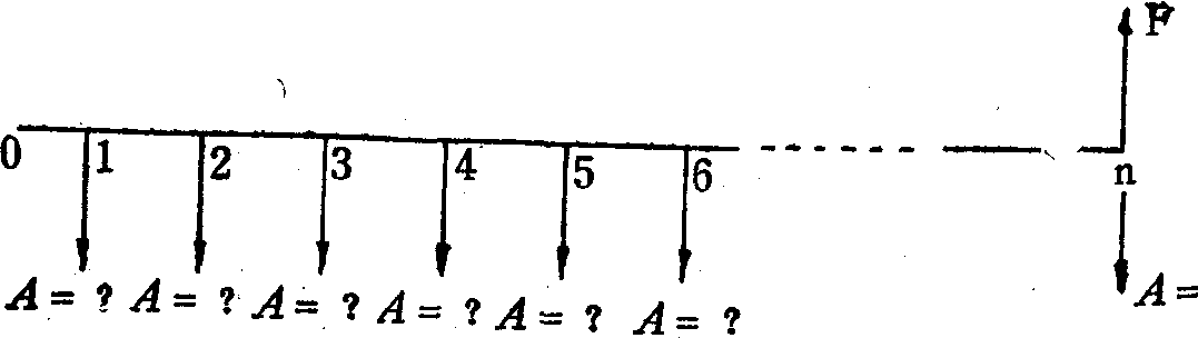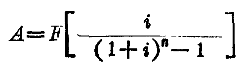 F——期终值; A——每个计息期末等额存储资金; n——计息周期数; i——复利。 |