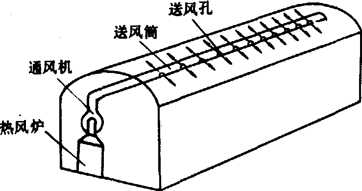 图7 热风供暖示意图 塑料温室plastic greenhouse采用塑料薄膜、塑料板材等塑料制品为采光覆盖材料的温室。中国将拱型屋顶的塑料薄膜覆盖温室称为塑料大棚。温室的基本外型为圆拱形屋面,单栋或连栋。塑料温室在白天晴天升温快,夜间散热量大,应注意夜间保温。 |