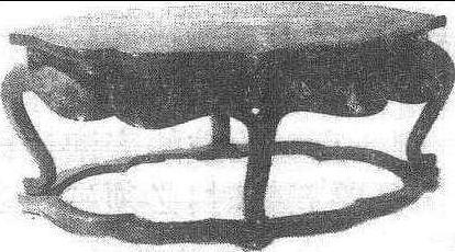 | 释义 | 填漆菱花形小桌明代。高17.3、长43.9、宽28.9厘米,木胎。朱漆地,先刻好花纹,再用各色填入。桌面边缘饰回文。正中图案为一持杖缓引于桥上的老翁,神态安详,前有一童持琴侧身回首凝视。河中泛有渔舟。河对岸山上有一亭。桌腿作大曲率S形,腿端外翻,腿下端与托泥相连接。束腰、托腮、托泥、腿外端均刻有缠枝牡丹菊花。桌面与托泥上下呼应,整个造形突出了曲线,使整体有稳定感。现藏旅顺博物馆。