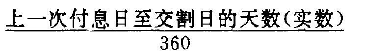 在国际金融市场上买卖国际债券,如果交易对象是附息债,遇到交割日在两次付息日之间时,应由买方付给卖方的已生息部分的金额就是外债的应计利息。外债的应计利息根据其种类不同,计算方法也不尽相同。国际债券交易中,买方向卖方支付的款项总额称为交割金额。应计利息的计算:❶美国国库券应计利息=年利×❷欧洲货币债券、美国事业债、扬基债券应计利息=年利×❸加拿大国库券、英国国库券(剩余期限不满5年)、法国国库券、日本国债应计利息=年利×其中,法国国库券遇到闰年,应计利息包括2月29日时,按366天计算。❹浮动附息债应计利息=年利×按照上述计算公式可求出每票面100单位外币的应计利息。在实际交易中,还要用上面计算求得的每100单位外币的应计利息,乘以票面金额,求出外币的应计利息,再乘以支付货币的外汇汇率,得出支付货币的应计利息,例如用人民币购入美国国库券时,应付利息的计算如下:人民币应计利息额=外汇应计利息额×外汇汇率交割金额的计算:❶买进债券时,交割金额的计算公式:买进金额=外币约定金额×汇率+外币应计利息×汇率❷卖出债券时,交割金额的计算公式:卖出金额=外币约定金额×汇率+外币应计利息×汇率一外币约定金额×汇率×有价证券交易税率