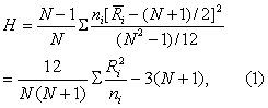 | 释义 | 多个样本比较的秩和检验 多个样本比较的秩和检验本法利用多个样本的秩和来推断各样本分别代表的总体的位置有无差别(即各总体的变量值有无倾向性的不同)。它相当于单因素方差分析的非参数方法,亦称H检验(W.H.Kruskal与W.A.Wallis,1952),有直接法和频数表法。适用于计量资料与等级资料。检验假设H0是各总体的分布相同,备择假设H1是各总体的位置不同或不全相同。