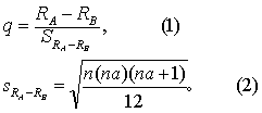 H0:血浆总皮质醇含量的任两个总体分布均相同, H1:任何两总体的位置不同或不全相同。 a=0.05。 三组秩和按大小顺序排列见表1 Ri行,由此确定各对比组及a,见表2第(1)、(3)栏。求各对比组秩和之差RA-RB,见表2第(2)栏。按式(2)求两组秩和之差的标准误SRA-RB,结果见表2第(4)栏。 (1)与(3)比较时: