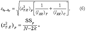 (5)根据组数和SSp的自由度查q界值表 (见条目“多个样本均数间的两两比较”),按所取检验水准作出推断结论。 若几个实验组T的回归系数都要与一个对照组C的回归系数作比较,则可用Dunnett检验,其标准误的计算公式为