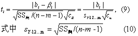 查F界值表,P<0.01,按α=0.05水准拒绝H0,接受H1,表明例1的回归方程有显著性,故可认为方程是有效的。 (2)偏回归系数的假设检验。按式(9)、(10)得:
