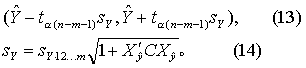 式中X′g表示某受试者各自变量观察值组成的行向量,如例3, X′g=(1 38 2.6027)。 (3)按式(13)、(14)预测个体值Y的容许区间,可用于确定正常值范围或质量控制。
