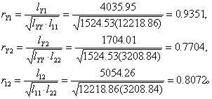 按式(1)求三个变量间的简单相关系数: