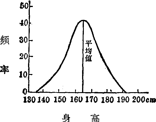 体的身高呈中间状态,即近于平均值,极高和极矮的个体只占很小一部分,也就是说,两头少、中间多,其分布基本上属正态分布的类型(图1)。