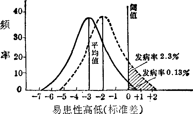 图2 群体易患性变异的分布示意图