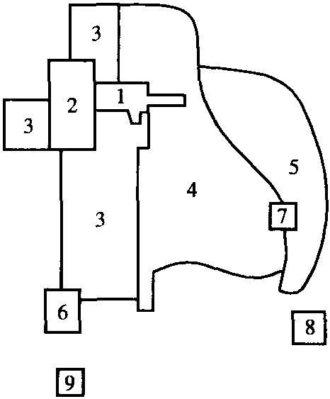 1. 中心商业区; 2. 批发轻工业区; 3. 低级住宅区; 4.中级住宅区;5.高级住宅区;6.重工业区;7.郊外商业地区;8.住宅郊外;9.工业郊外。