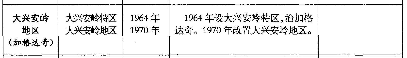 大兴安岭地区(加格达奇)大兴安岭特区大兴安岭地区1964年1970年1964年设大兴安岭特区,治加格达奇。1970年改置大兴安岭地区。